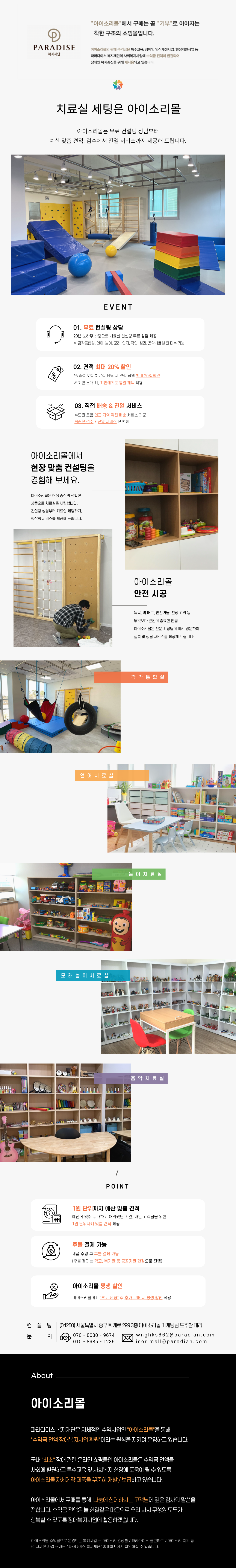 - 수도권지역 2개 이상 치료실 세팅 시 무료진열 서비스